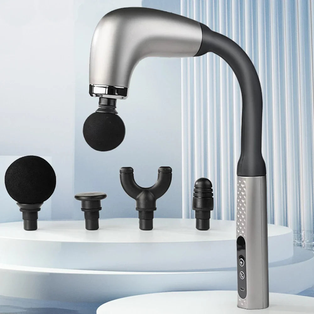 Fascia Gun with Extended Handle and Elbow for Self-assist Massage of the Upper and Lower Back Muscle Relaxation and Massage Done